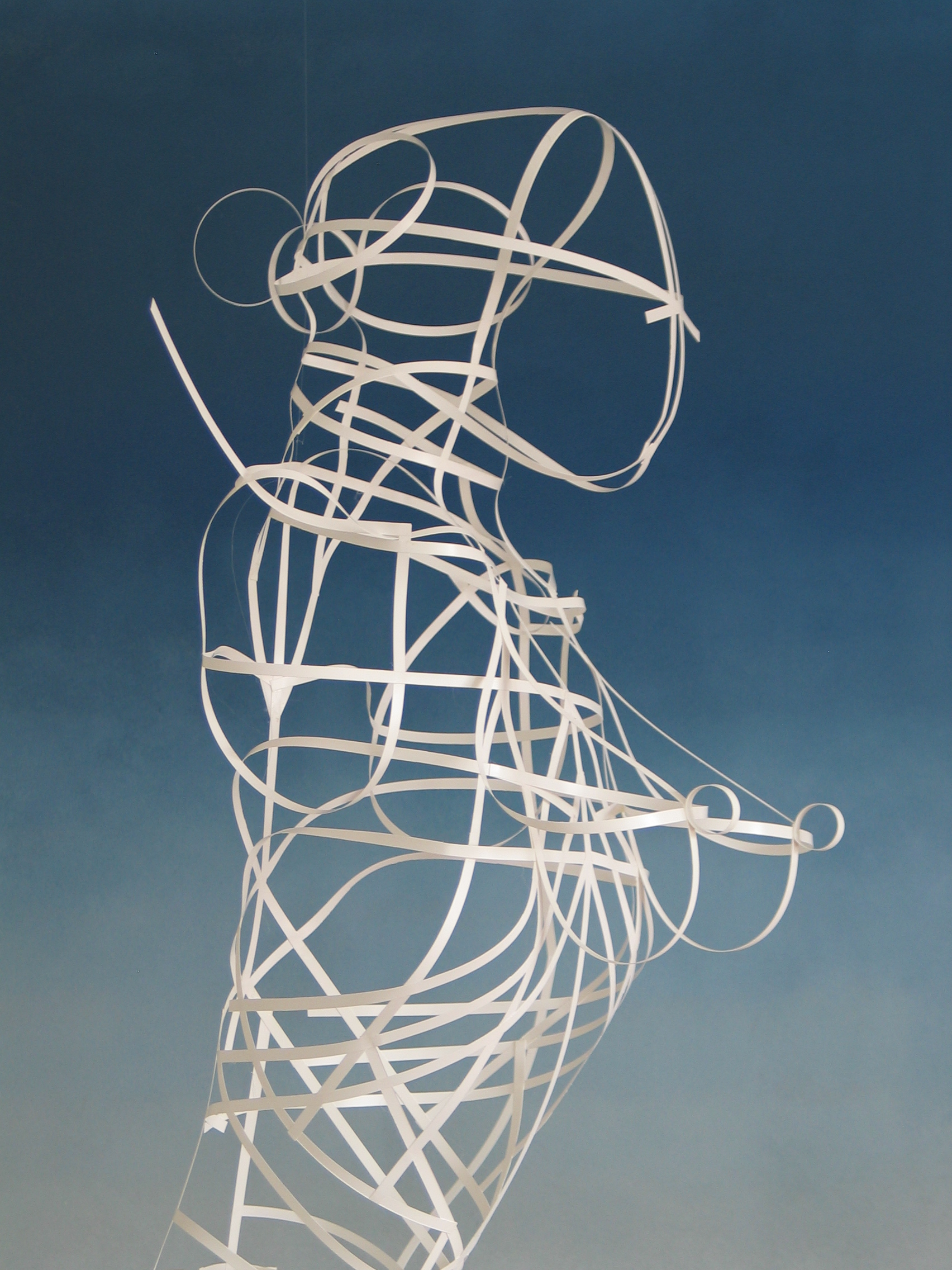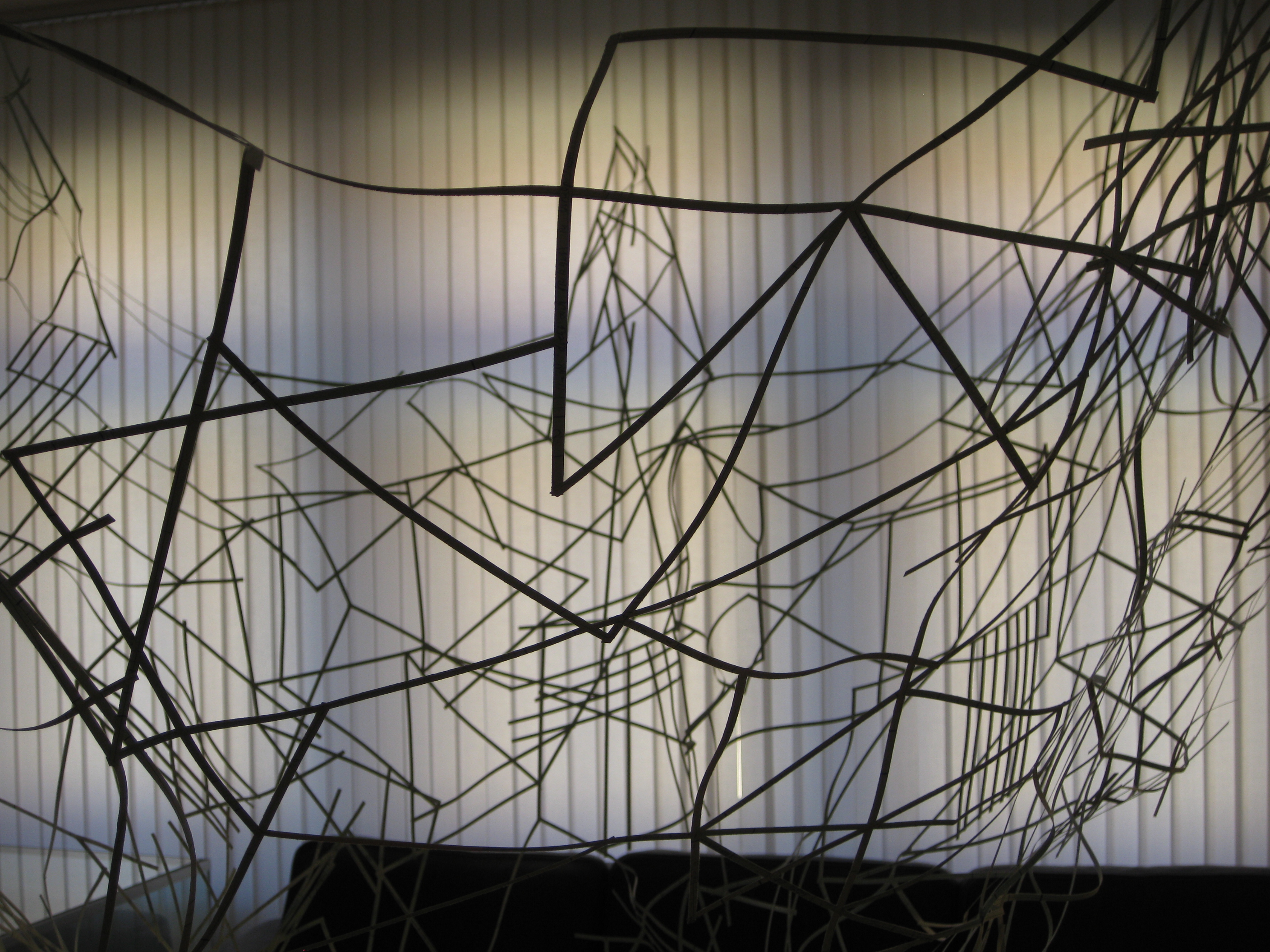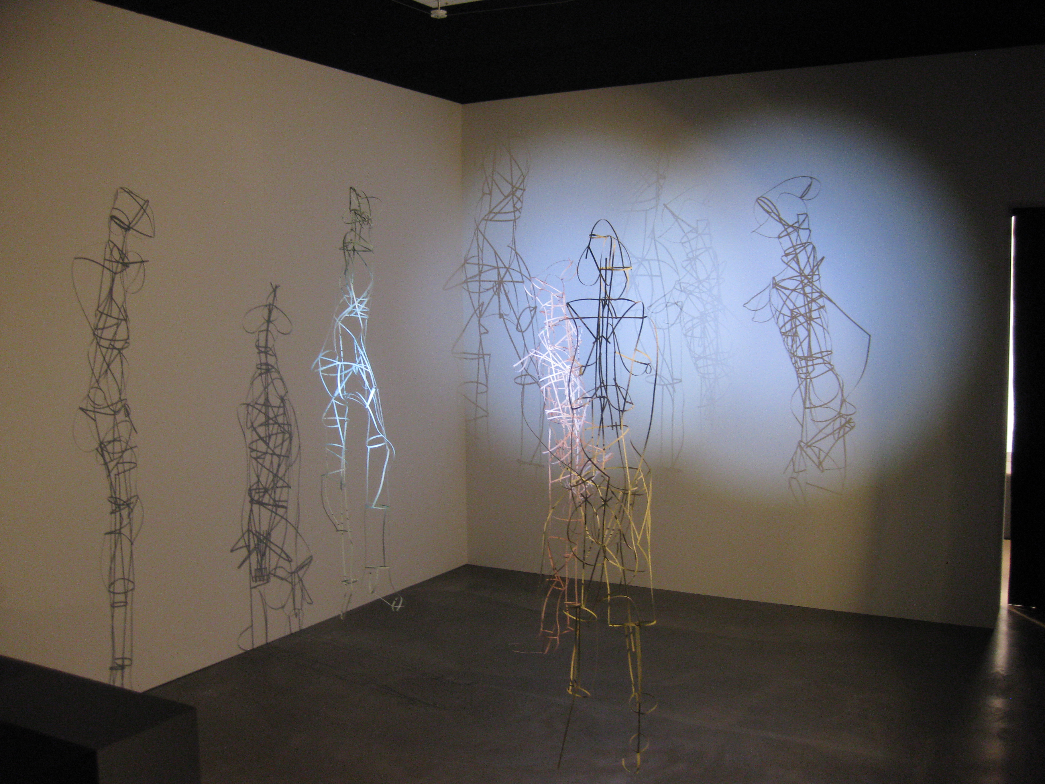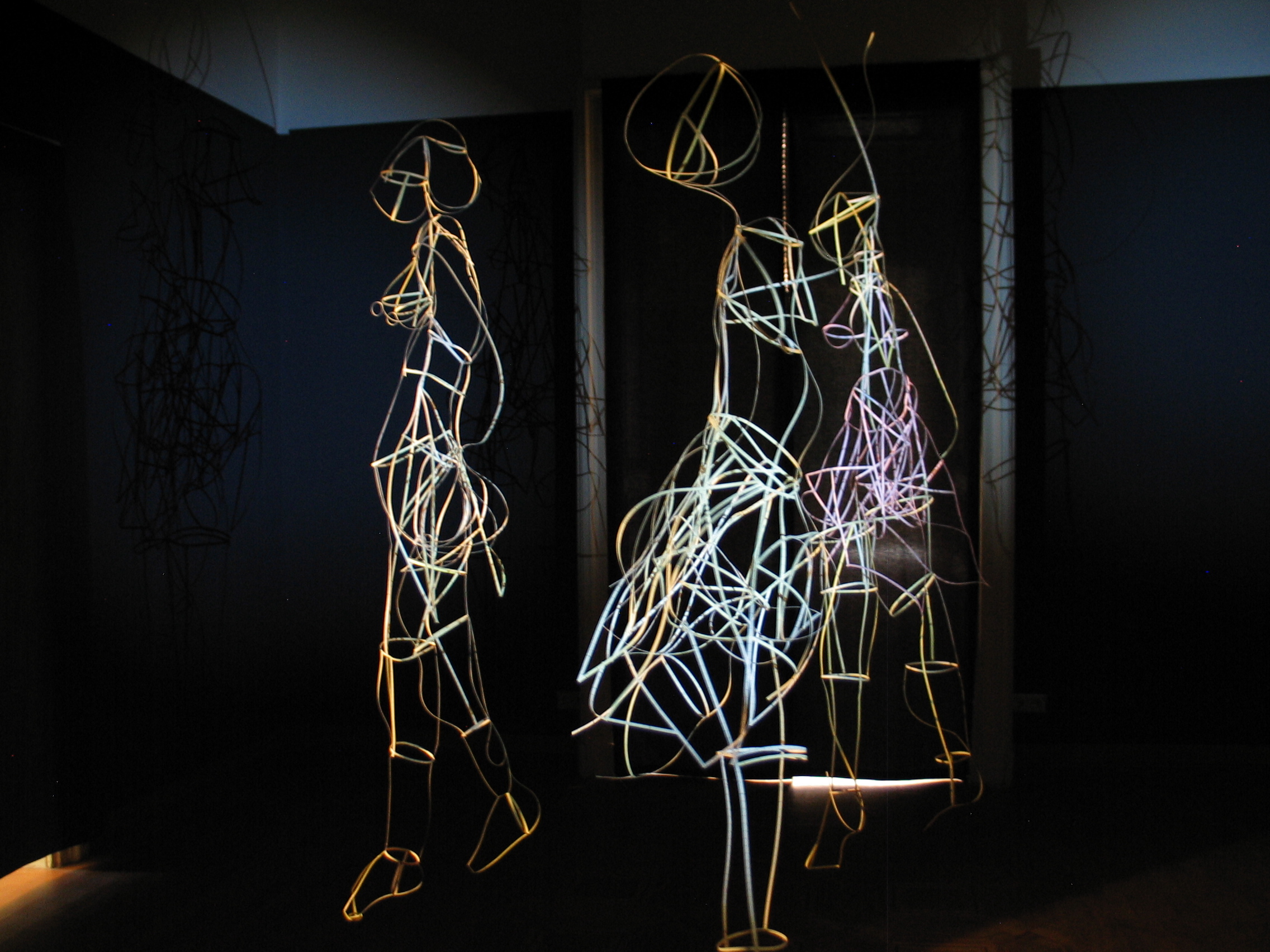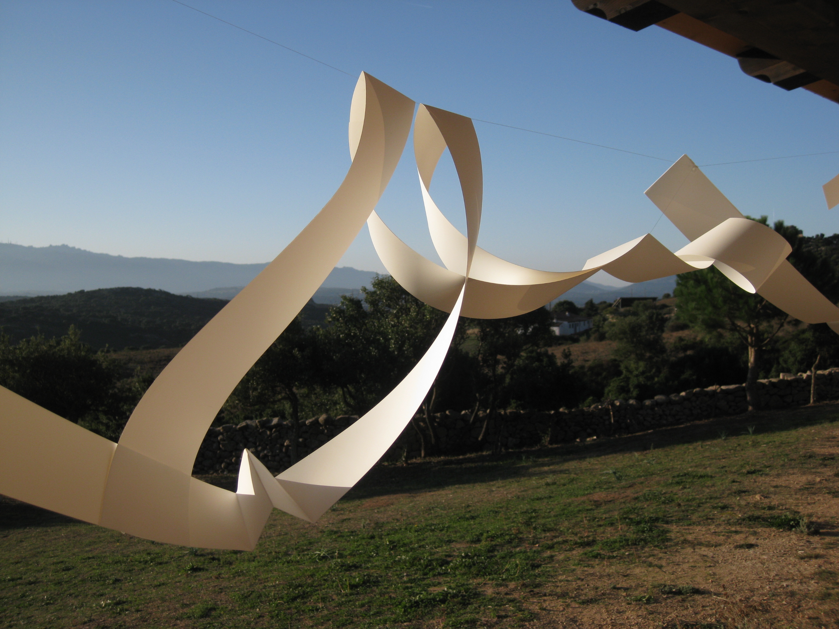 Die Objekte wiegen nur wenige Gramm und sind nur an einem Nylonfaden aufgehängt. Sie erscheinen als dreidimensionale Zeichnungen im Raum, die sich in der Luftströmung bewegen oder sehr langsam in Bewegung gesetzt werden.
