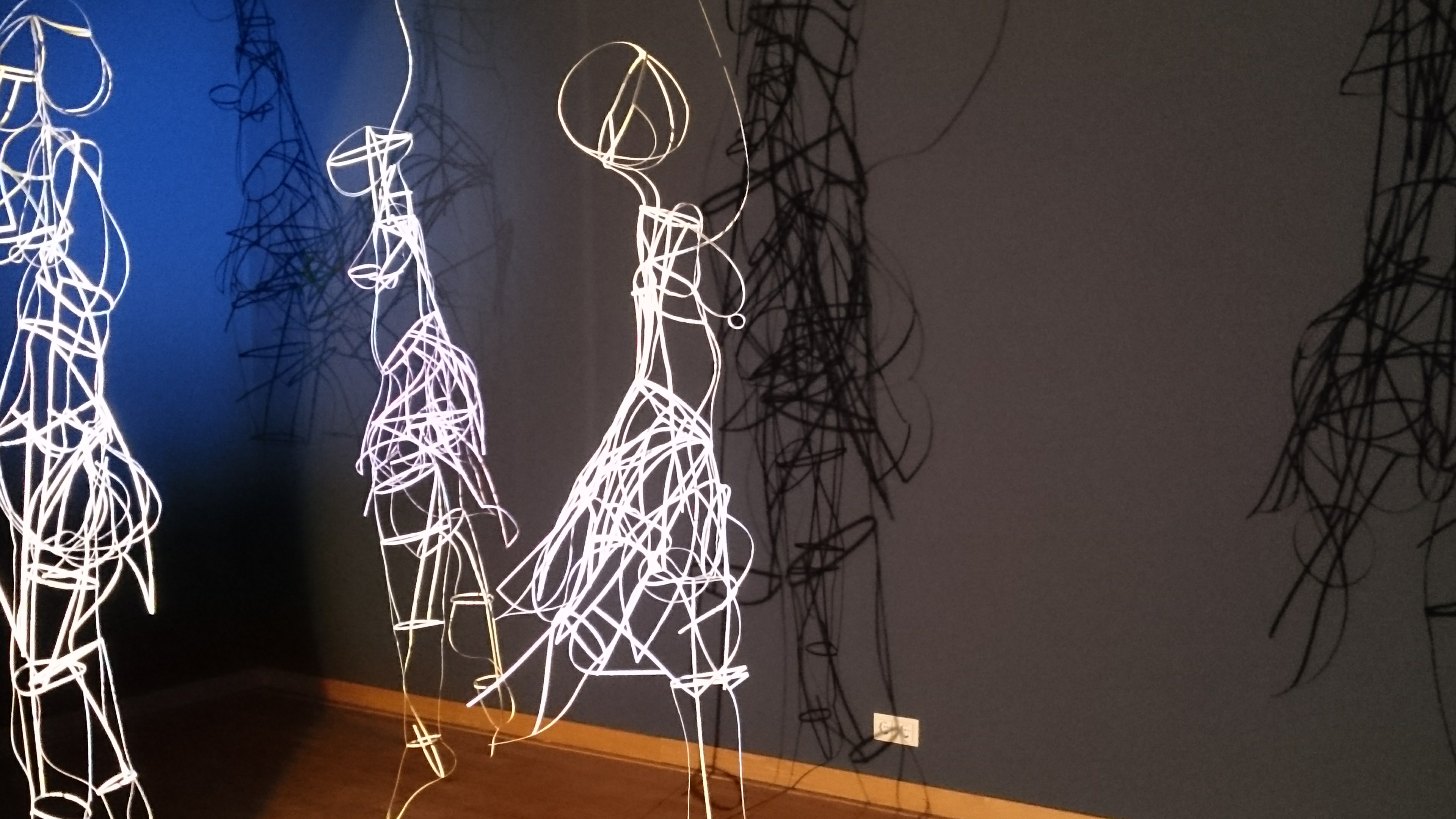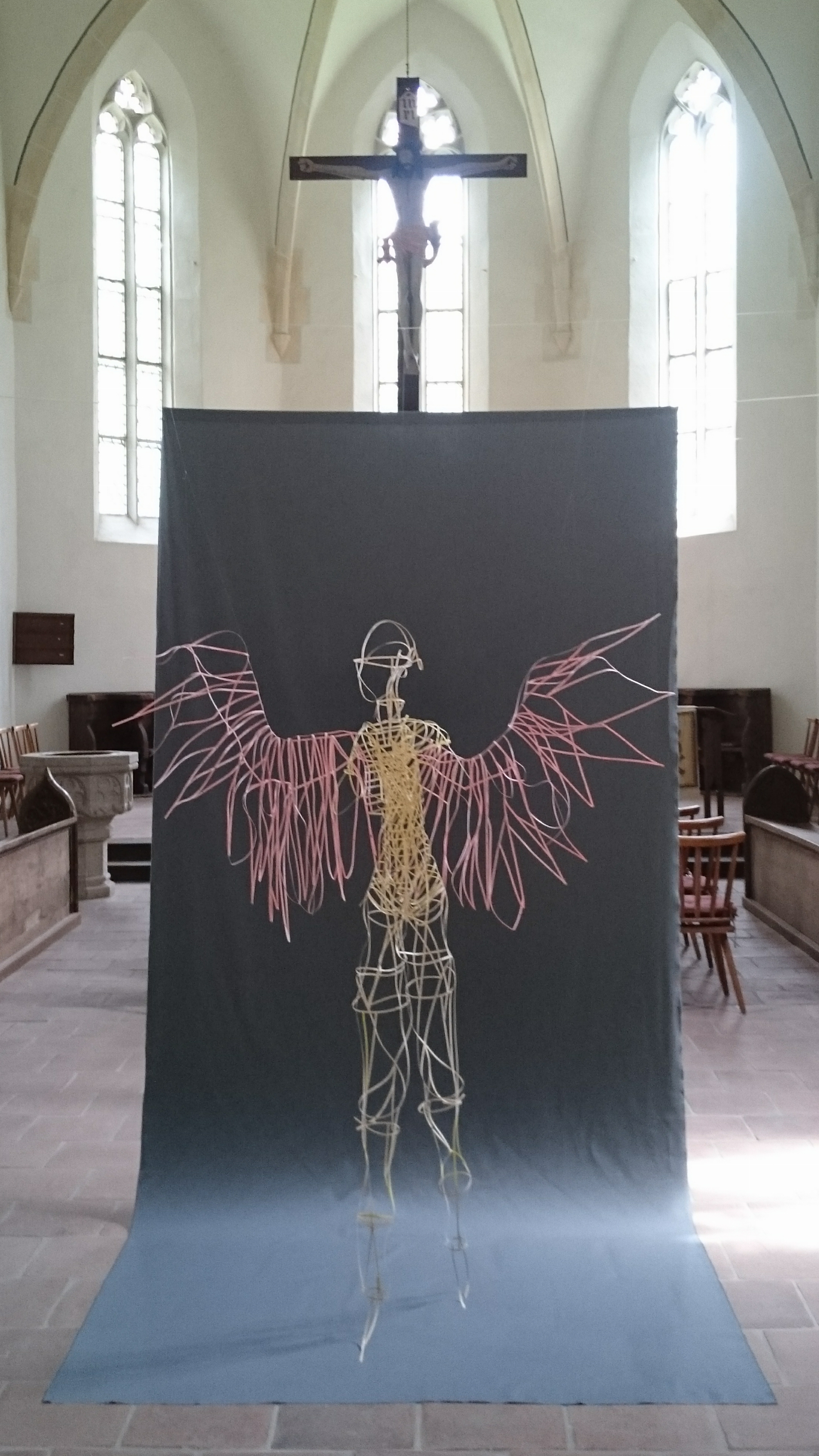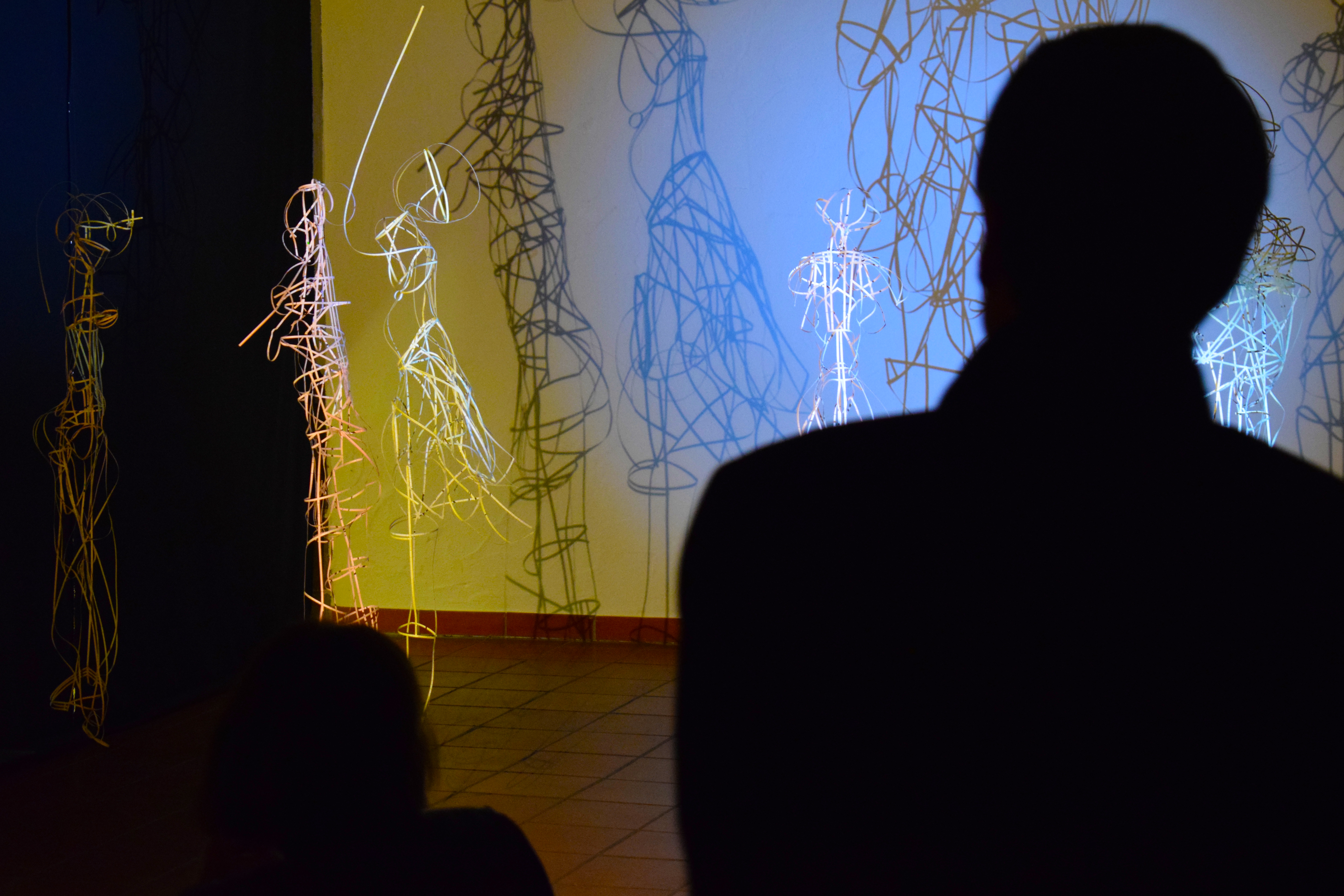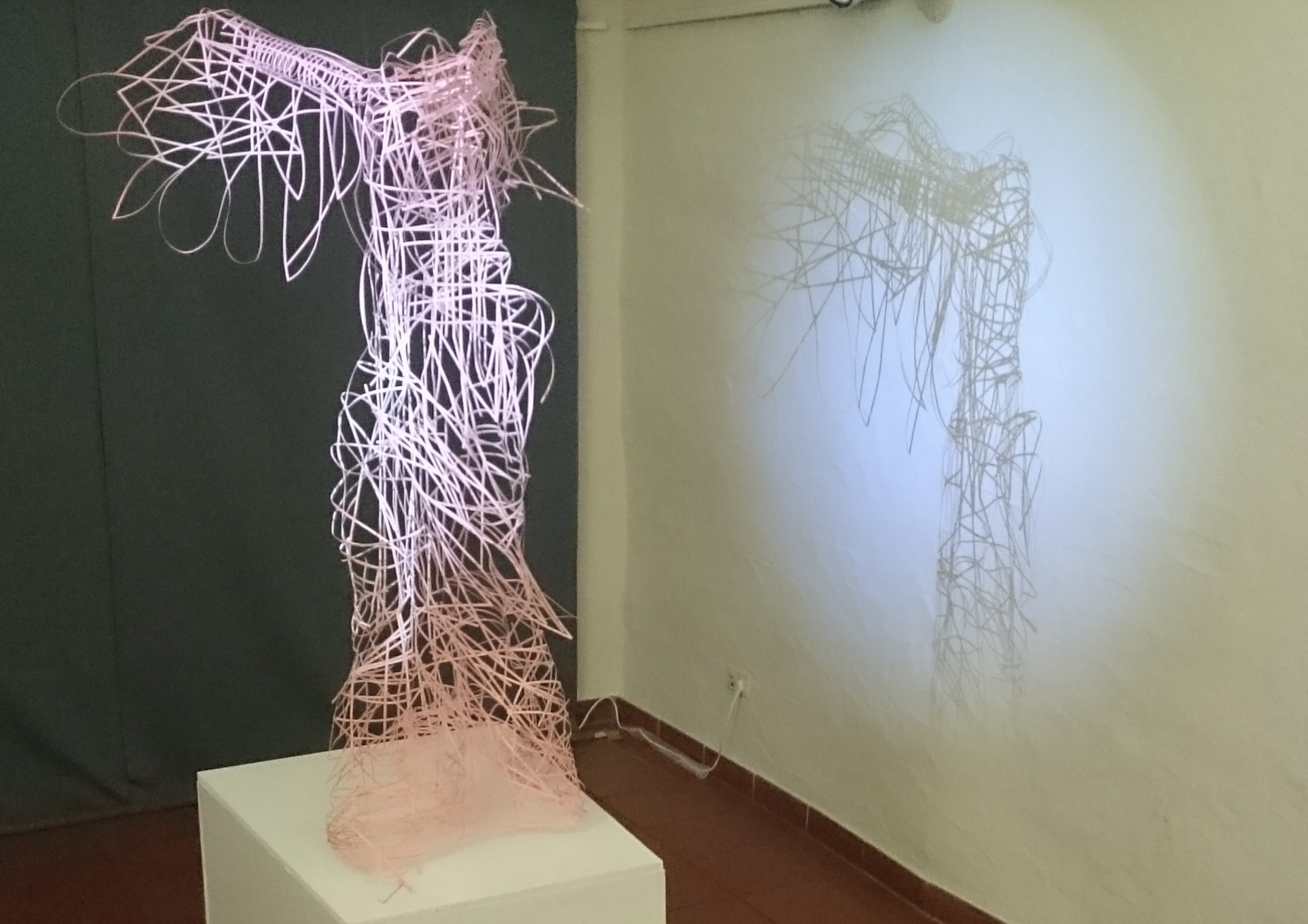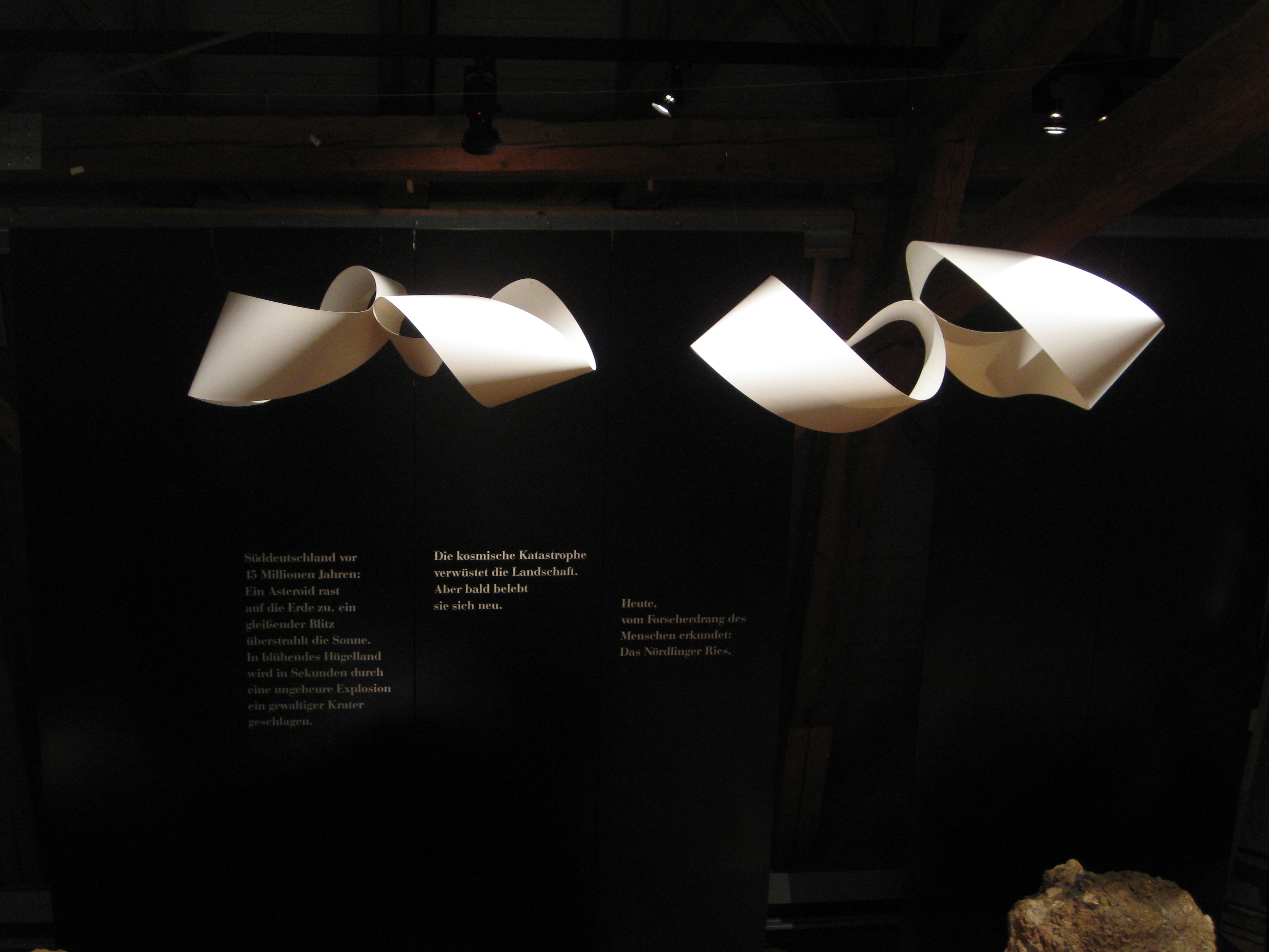 Die Objekte wiegen nur wenige Gramm und sind nur an einem Nylonfaden aufgehängt. Sie erscheinen als dreidimensionale Zeichnungen im Raum, die sich in der Luftströmung bewegen oder sehr langsam in Bewegung gesetzt werden.