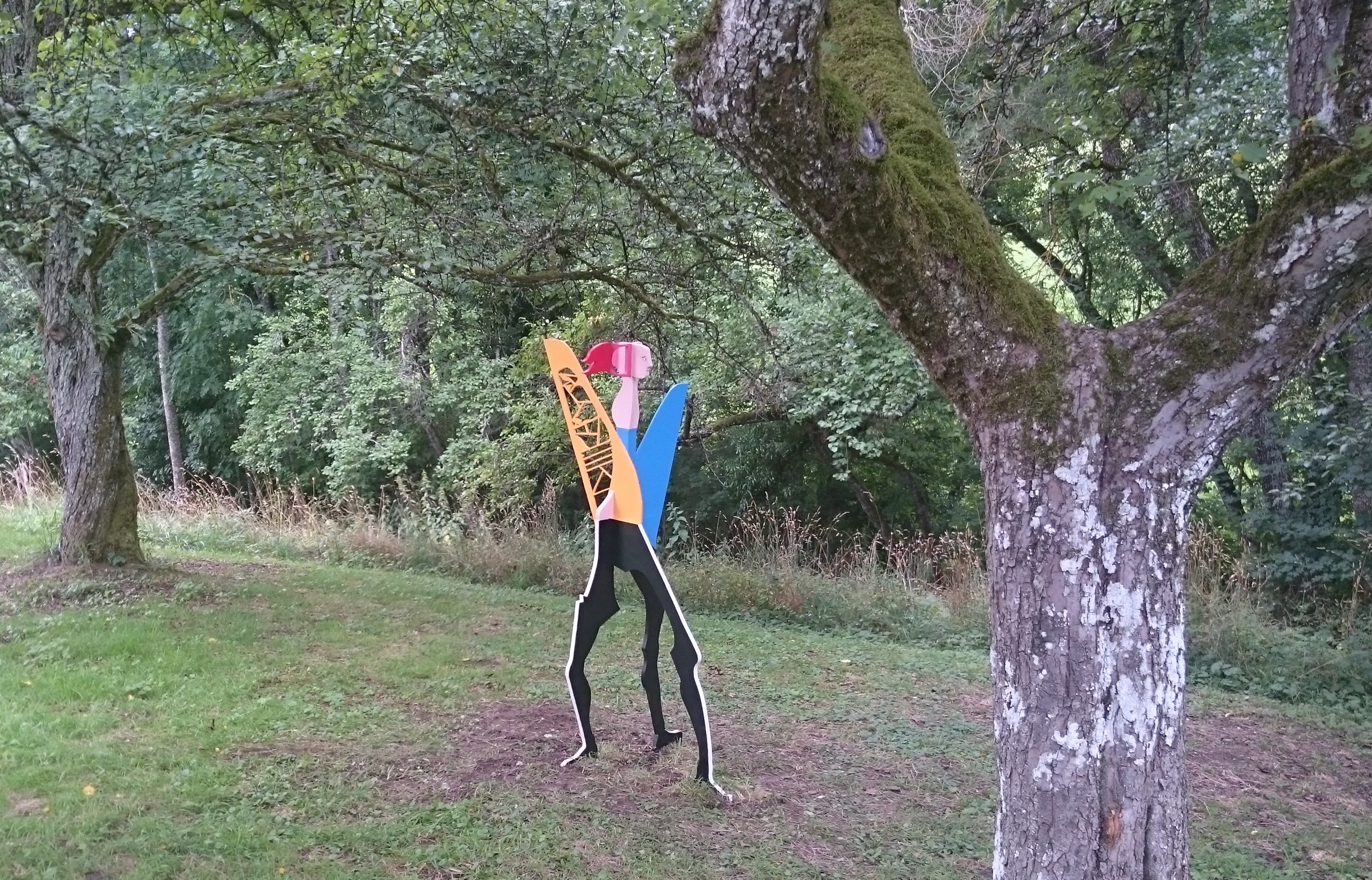 Reihe Geister der Elemente: Lebensgroße Figuren aus Abfallholz zusammengefügt, mit Acrylfarben bemalt